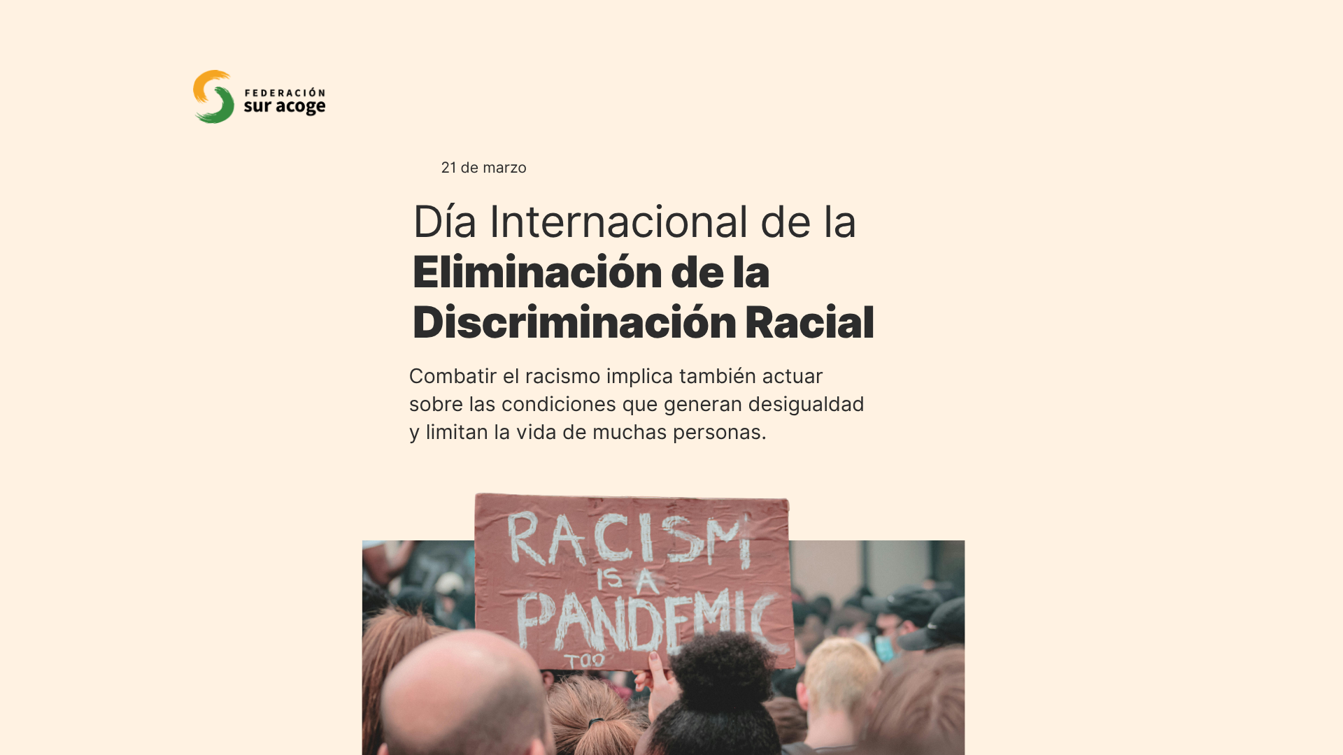 En el Día Internacional contra la Discriminación Racial, desde Sur Acoge queremos poner el foco en una idea clave: el racismo no se sostiene solo en prejuicios o actitudes individuales, sino en desigualdades concretas que limitan el acceso a derechos y condicionan la vida de muchas personas.