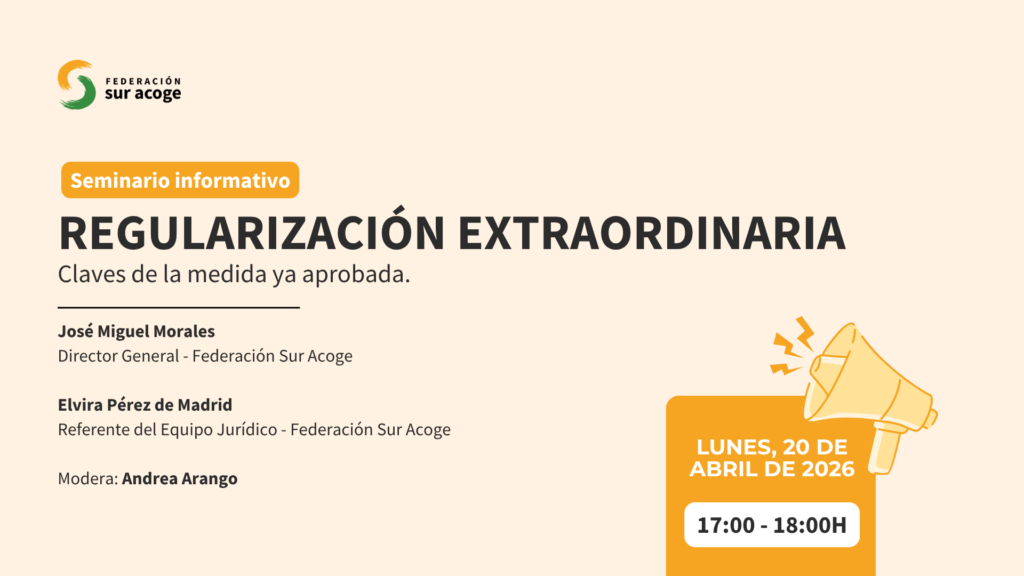 El próximo lunes 20 de abril, a las 17:00 h, celebraremos un webinar abierto sobre la regularización extraordinaria, centrado en la información más relevante sobre la medida ya aprobada y, especialmente, en la documentación y los requisitos necesarios para poder optar al proceso.